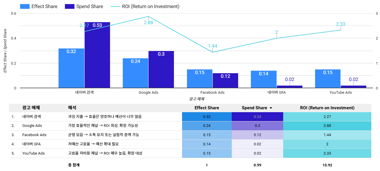 MMM은 각 채널의 기여도를 정량화하여 예산을 어디에 집중해야 할지 명확히 알려줍니다.